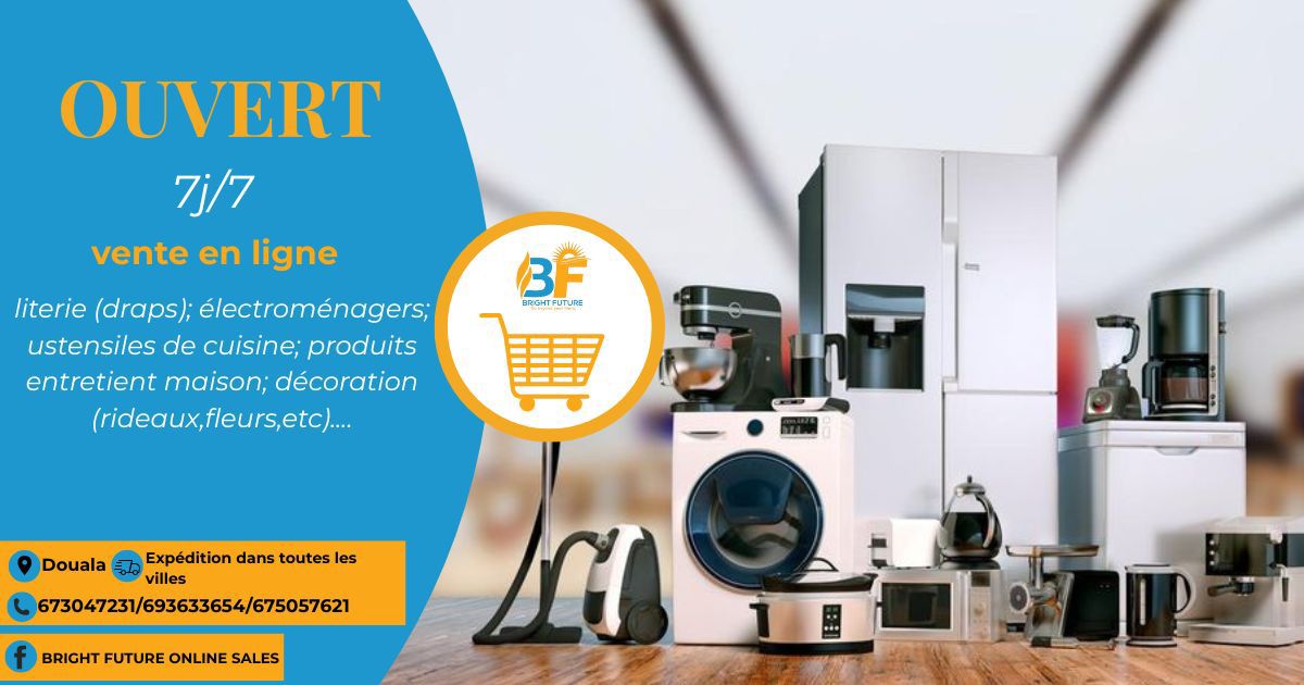 Situé dans la ville de Douala, Bright Future Sales est une boutique en ligne ouverte tous les jours qui se consacre à la fourniture d'équipements essentiels pour l'amélioration du cadre de vie. L'établissement propose une sélection variée d'articles alliant utilité et esthétique, permettant de répondre aux besoins de chaque foyer de manière efficace. La gamme de produits se compose des éléments suivants :