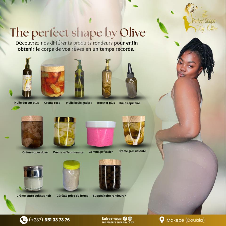 Situé à Makepe, derrière Tradex Parcours Vita à Douala, The Perfect Shape by Olive est un institut de beauté spécialisé dans l'esthétique corporelle et les soins raffermissants. Cet établissement dédié au bien-être propose des solutions naturelles pour sculpter la silhouette.