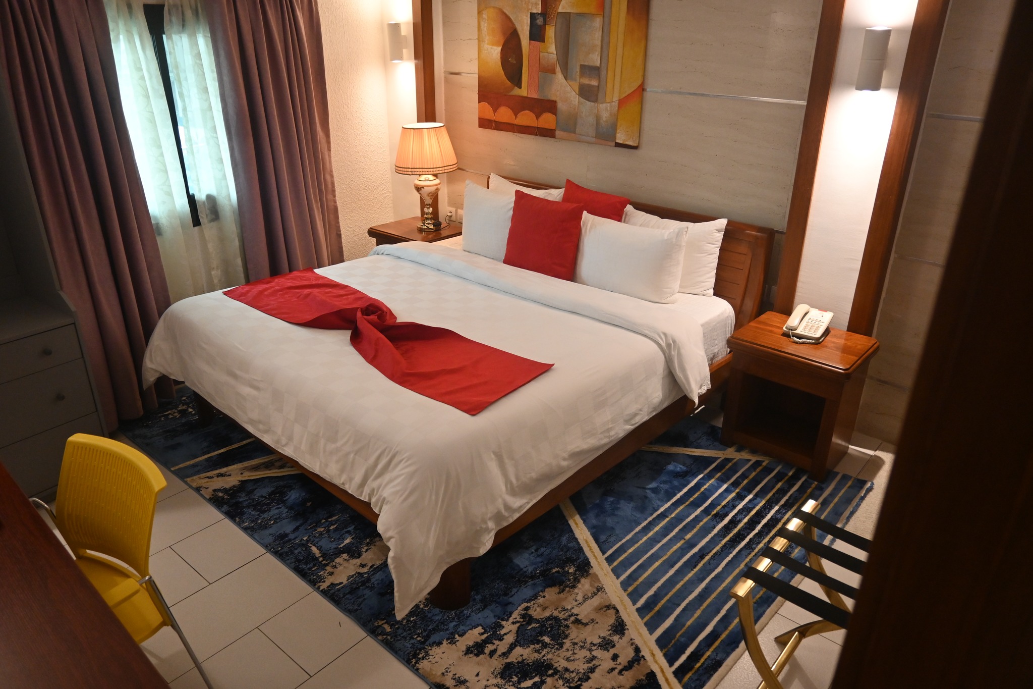 En outre, GRAND HOTEL propose un service 24h/24, incluant une conciergerie, un service de chambre et une navette aéroport disponible sur demande. L'établissement est situé à seulement 5 minutes du centre-ville, des centres commerciaux et des sites culturels, vous permettant ainsi de profiter pleinement de tout ce que Douala a à offrir.