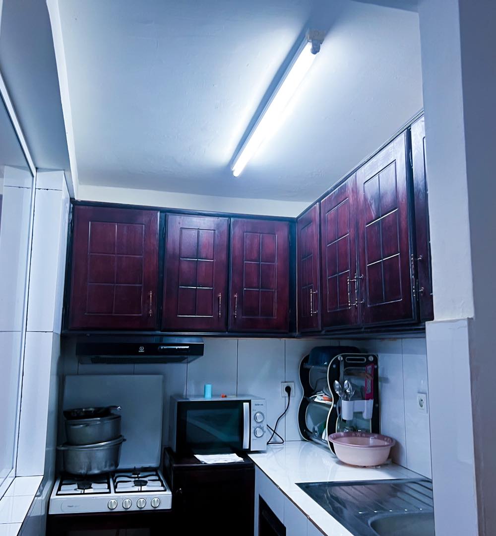 Les logements comprennent des salons et une chambre climatisés, garantissant un confort optimal même pendant les chaudes journées doualtaines. Chaque appartement est équipé d'une cuisine complète avec gazinière, micro-ondes et four, permettant aux résidents de préparer leurs repas facilement.