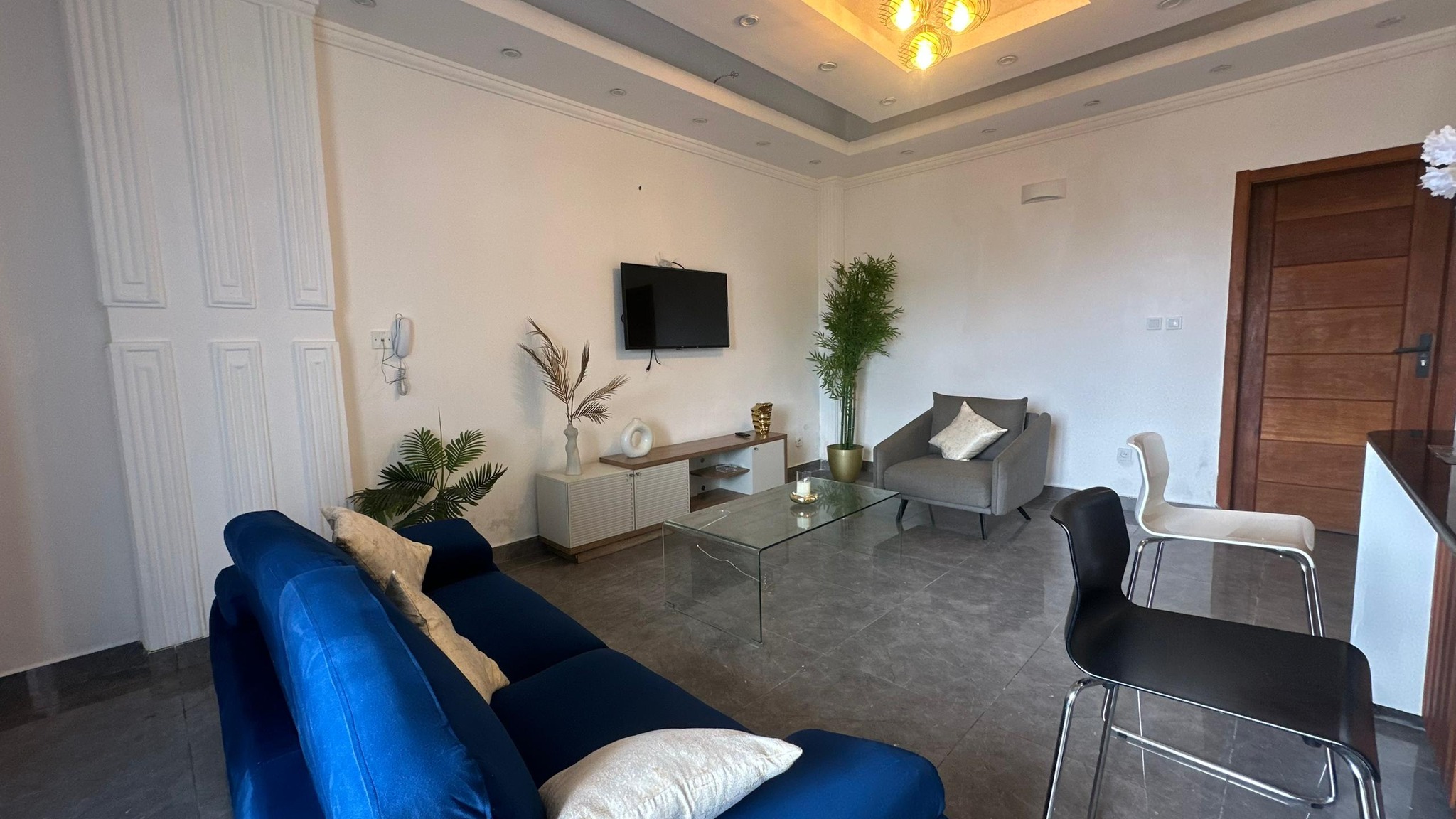 Située à Makepe à Douala, Tchinda Meli Residence est un établissement d'hébergement qui offre des appartements et studios meublés de luxe, prêts à accueillir les visiteurs. Les espaces raffinés et modernes garantissent un confort digne d’un hôtel quatre étoiles. L’emplacement stratégique de la résidence, proche de toutes les commodités, permet un accès facile aux services essentiels. La sécurité et les services inclus ajoutent une tranquillité d’esprit pour tous les résidents.
