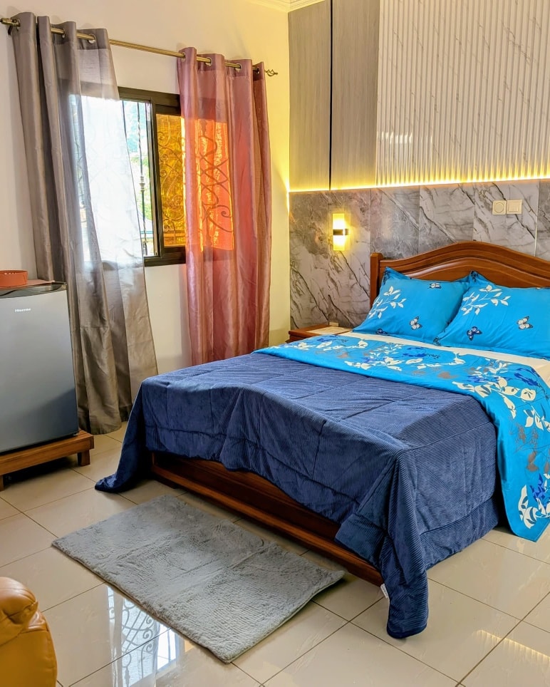 Après avoir profité du confort de la résidence, les habitants ou visiteurs de Yaoundé peuvent explorer plusieurs attractions locales. Le Parc de la Réunification est un espace verdoyant, idéal pour les promenades et les pique-niques, offrant un cadre paisible en pleine ville. V Lounge The Beach est un lieu prisé pour se détendre autour d'un verre, avec une belle vue sur l'horizon. Pour un bon repas, le restaurant 8 Mile est recommandé pour sa cuisine savoureuse et son ambiance accueillante.