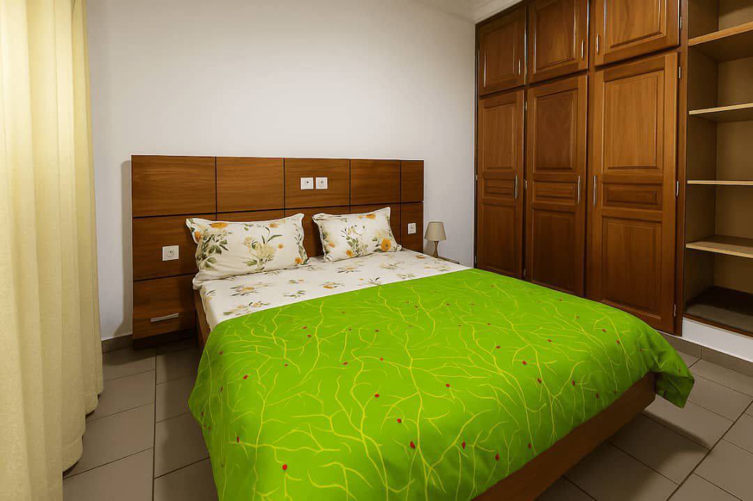 Les installations incluent un parking privé pour garantir la sécurité des véhicules, ainsi qu’un gardien pour veiller sur les lieux. L'eau chaude est disponible grâce à un forage, assurant un confort quotidien. La résidence est également équipée de caméras de surveillance pour une sécurité renforcée. Son emplacement stratégique permet d'accéder facilement aux commodités et aux attractions locales, rendant ainsi chaque séjour encore plus agréable.