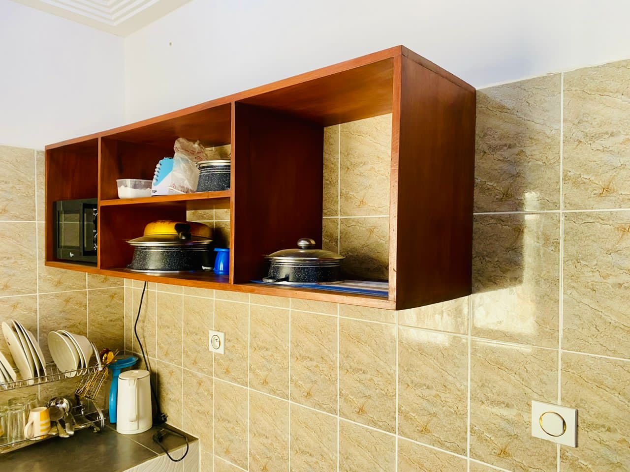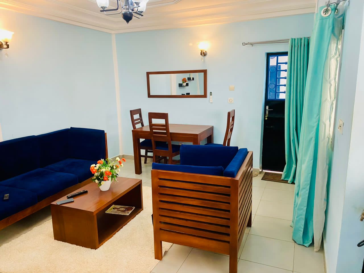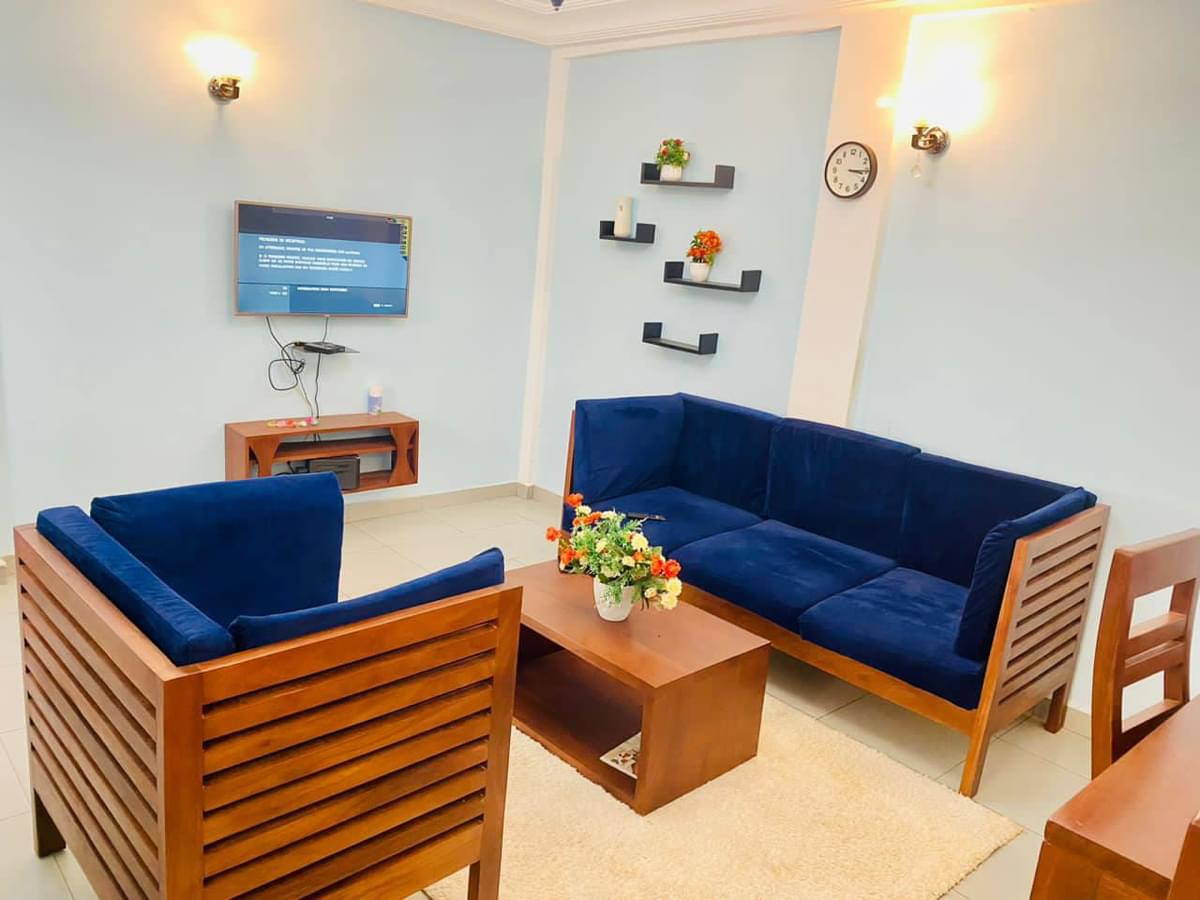 Les tarifs sont attractifs, avec des appartements proposés à 45 000 FCFA par jour et des studios à 25 000 FCFA par jour, ce qui en fait une option abordable pour différents types de séjours.