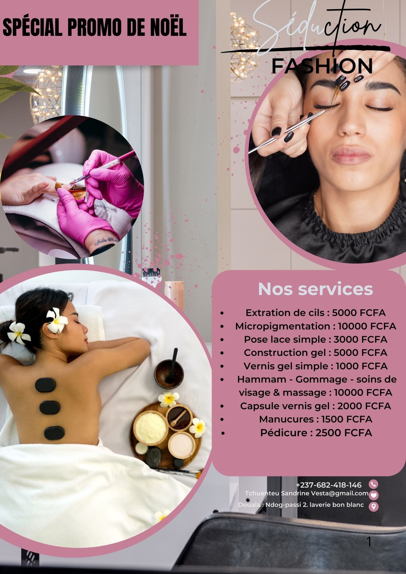 Situé à Ndogpassi 2, à côté de la Laverie Bon Blanc dans la ville de DoualaCentre De Formation Professionnelle Seduction Fashion est un établissement de formation d'excellence alliant enseignement professionnel et prestations beauté, expert dans la création d'un look éclatant.