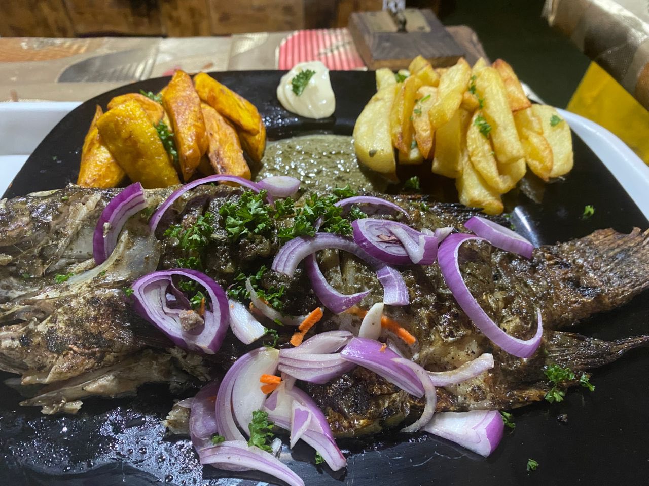 Situé à Essos à Yaoundé, Grillades A Gogo Restaurant est l'endroit idéal pour déguster des grillades savoureuses, où le secret réside dans une braise maîtrisée et des assaisonnements qui enchantent les papilles. Le menu offre une sélection de viandes, comprenant des saucisses savoureuses, du porc fondant et des quarts de poulet dorés. Les amateurs de poisson ne seront pas déçus, avec des maquereaux, carpes et bars frais à savourer.