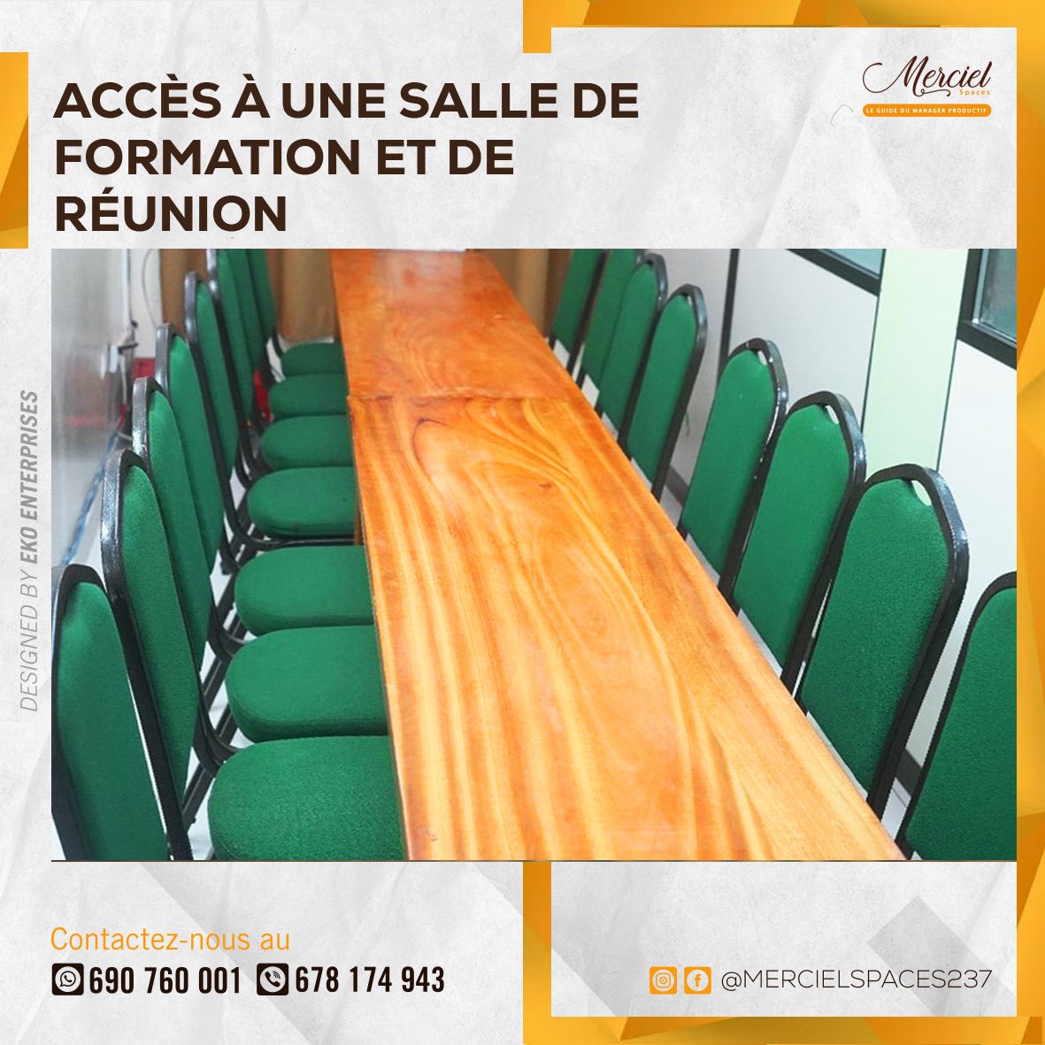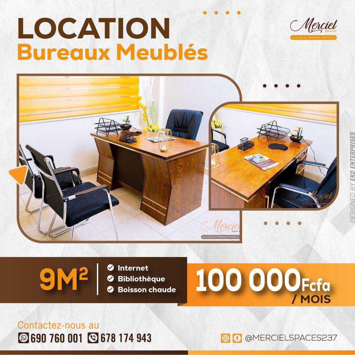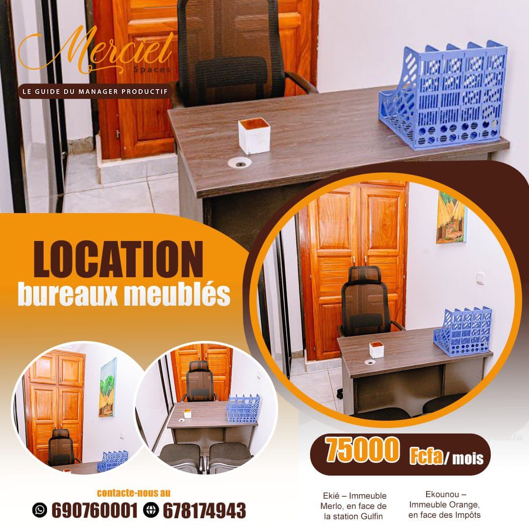En conclusion, MERCIEL SPACES est la solution idéale pour tous les professionnels et entreprises qui recherchent un espace de travail productif, meublé et crédible à Ekié et Ekounou. Contactez l'équipe dès maintenant pour une visite, une réservation ou une offre personnalisée.