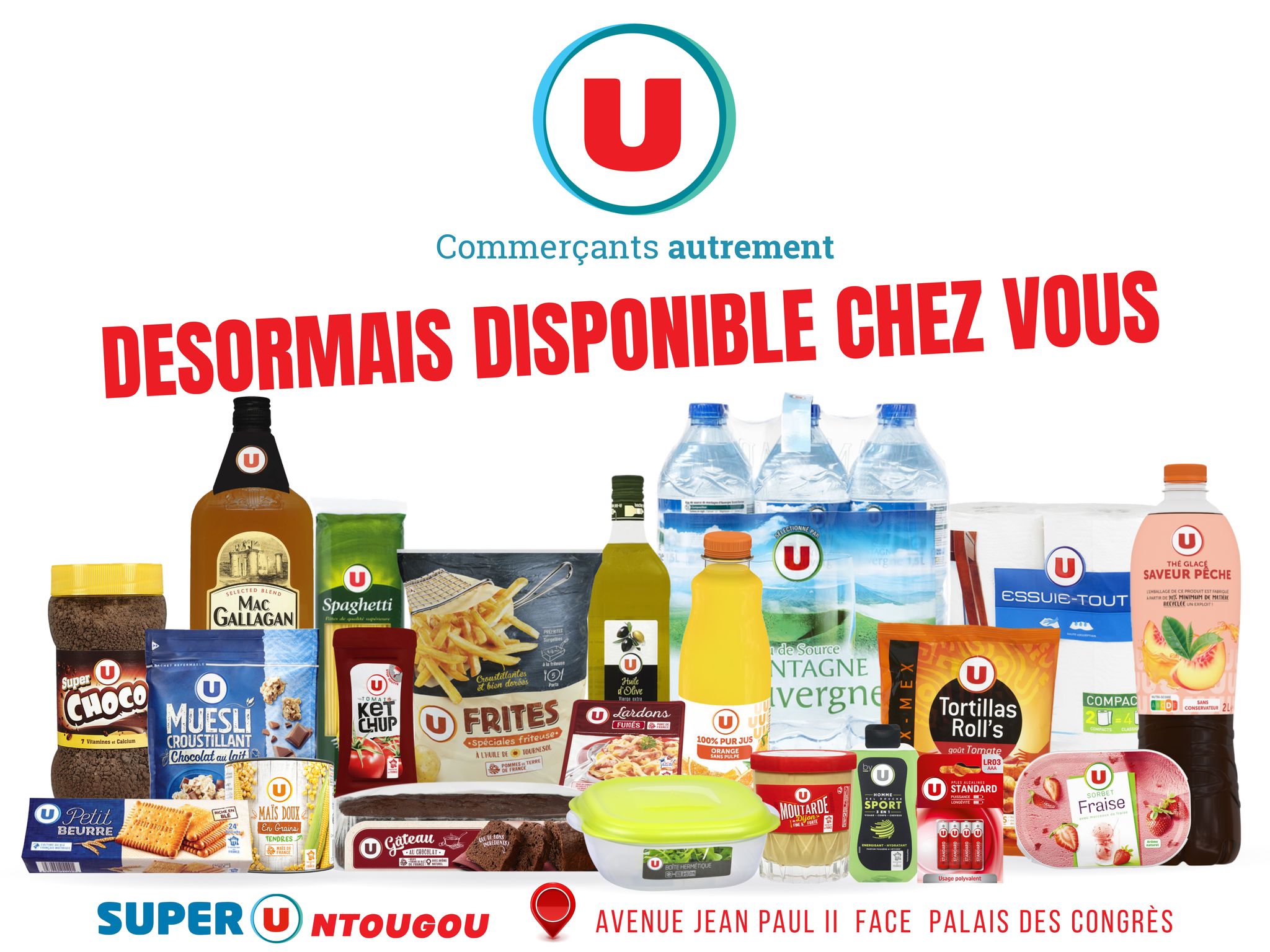 Situé au quartier Bonamoussadi à Douala, Super U est un supermarché réputé pour sa large gamme de produits. En tant que point de vente au détail, il propose une variété d'articles alimentaires et non alimentaires, répondant aux besoins quotidiens de ses clients.