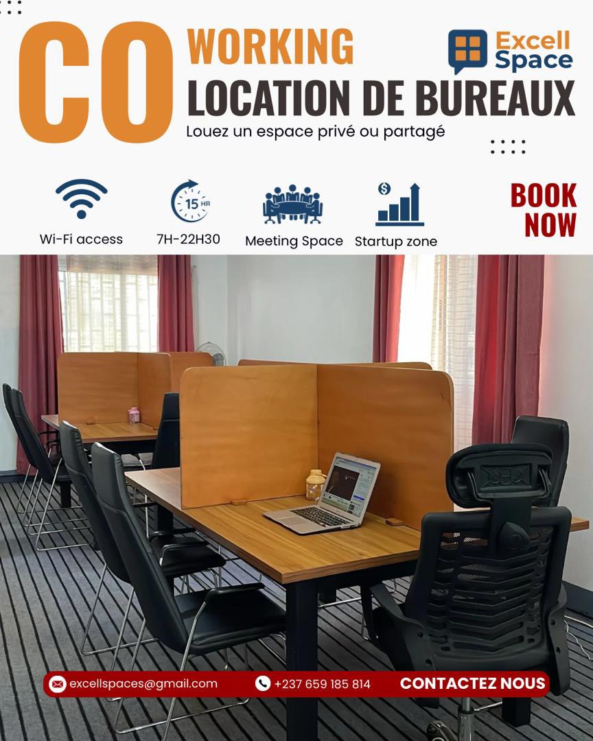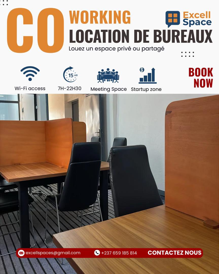 Situé sur la Nouvelle Route (Avenue Foe) au niveau du pont d'Omnisport à Yaoundé, Excell Space est un espace de coworking dynamique et accessible conçu pour les entrepreneurs, les freelances, les étudiants et tous les professionnels en quête d'un environnement de travail à la fois confortable, connecté et convivial. C'est l'endroit idéal pour travailler, réseauter et réussir.