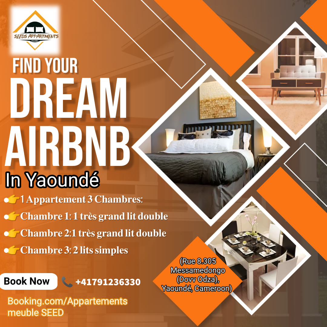 Situé au quartier Messamedongo à Yaoundé, SEED Appartements Y est une société immobilière spécialisée dans la proposition d'appartements haut de gamme. Idéalement situés à proximité de l'aéroport, ces appartements offrent un cadre de vie confortable et pratique pour les voyageurs et les résidents.