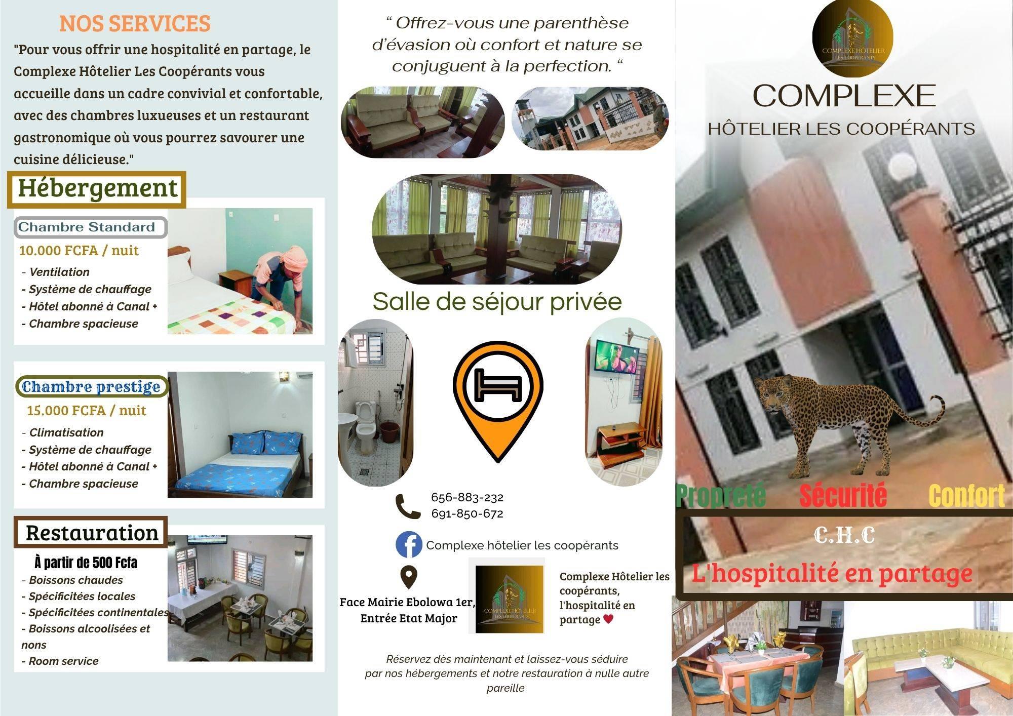 Situé à Ebolowa, le Complexe Hôtelier Les Coopérants est un établissement accueillant, idéalement placé en face de la Mairie Ebolowa 1er. L'hôtel se distingue par son concept d'hospitalité en partage dans un cadre convivial, confortable et serein, ce qui lui vaut des retours positifs de la part de ses visiteurs.