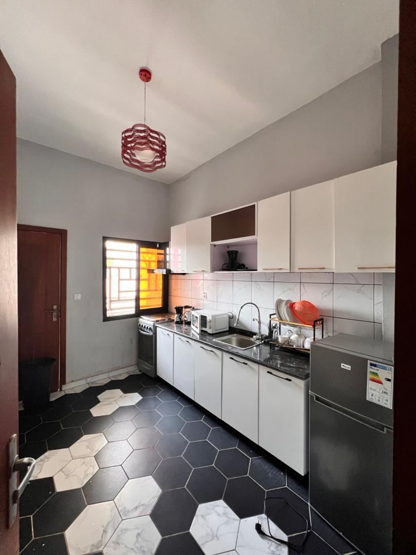 Les appartements de deux chambres, au prix de 50 000 FCFA par nuit, sont spacieux et idéaux pour les petites familles ou les colocataires. Ils incluent une cuisine équipée, un séjour confortable et une salle d'eau. Les studios indépendants, quant à eux, sont à 30 000 FCFA par nuit. Conçus comme un tout-en-un, ils disposent d'une pièce de vie avec kitchenette et salle d'eau intégrées, parfaits pour une personne seule ou un couple.