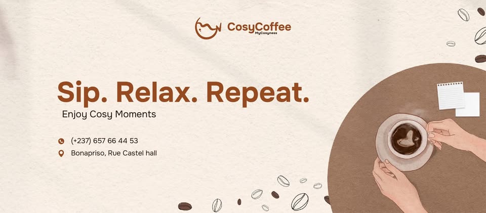 Situé à Bonapriso, à Douala, Cosy Coffee est un café accueillant qui ouvre ses portes du mardi au samedi de 7h30 à 20h30 et le dimanche de 12h30 à 21h30. Ce lieu charmant dispose de places assises confortables, idéales pour se détendre ou travailler dans une atmosphère conviviale.