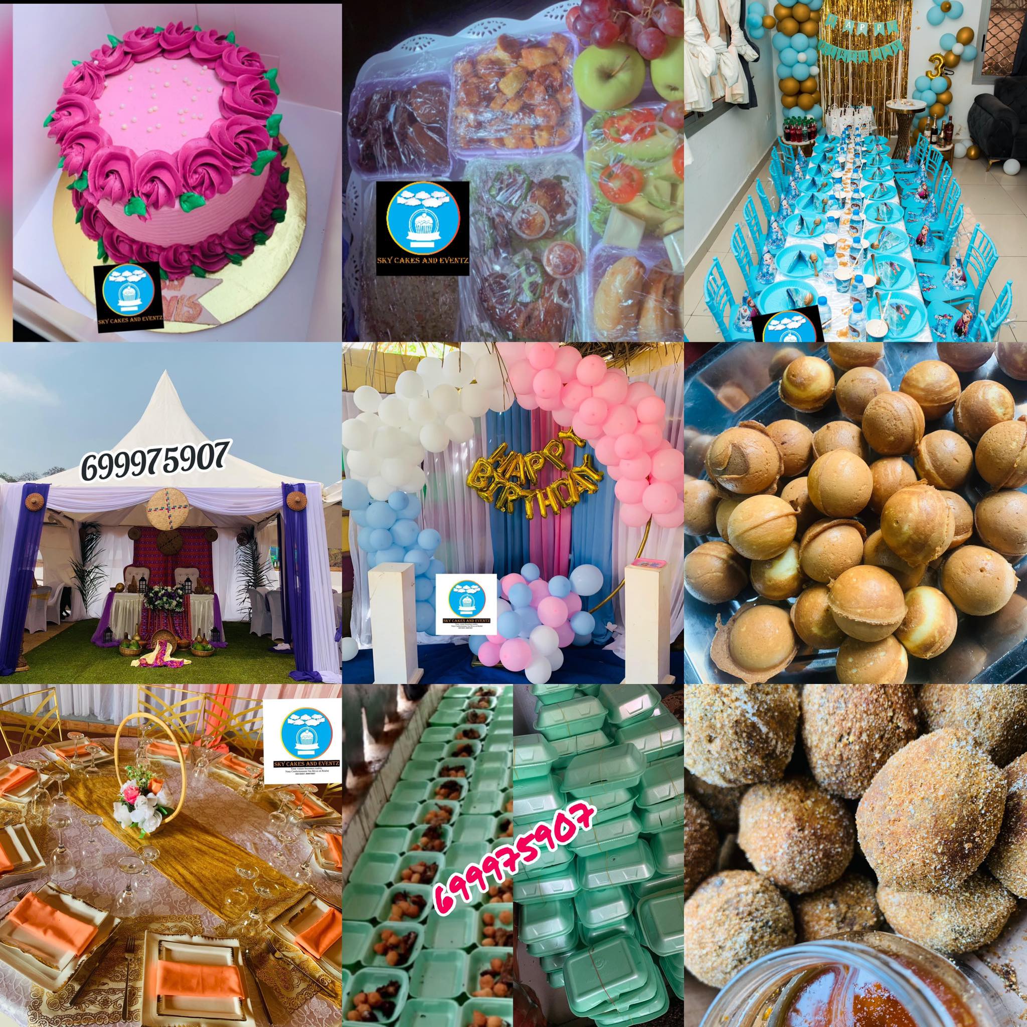En ce qui concerne les services événementiels, la boutique propose des décorations sur mesure pour divers événements, la confection de bouquets d'argent et des paniers surprises, ajoutant une touche personnelle à chaque célébration. Le menu de Sky Cakes & Events est riche et varié, incluant des options telles que :