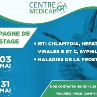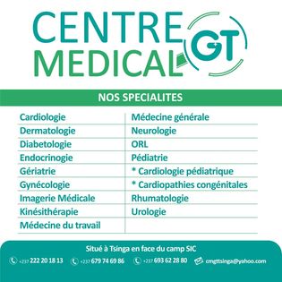 Situé à Tsinga, à Yaoundé, le Centre Médical GT est un établissement de santé moderne qui s'engage à fournir des soins de qualité à ses patients. Il dispose d'une salle d'accueil spacieuse et accueillante, de salles d'hospitalisation confortables, ainsi qu'un laboratoire bien équipé pour les analyses médicales. Ce cadre propice au bien-être des patients permet une prise en charge efficace et humaine.